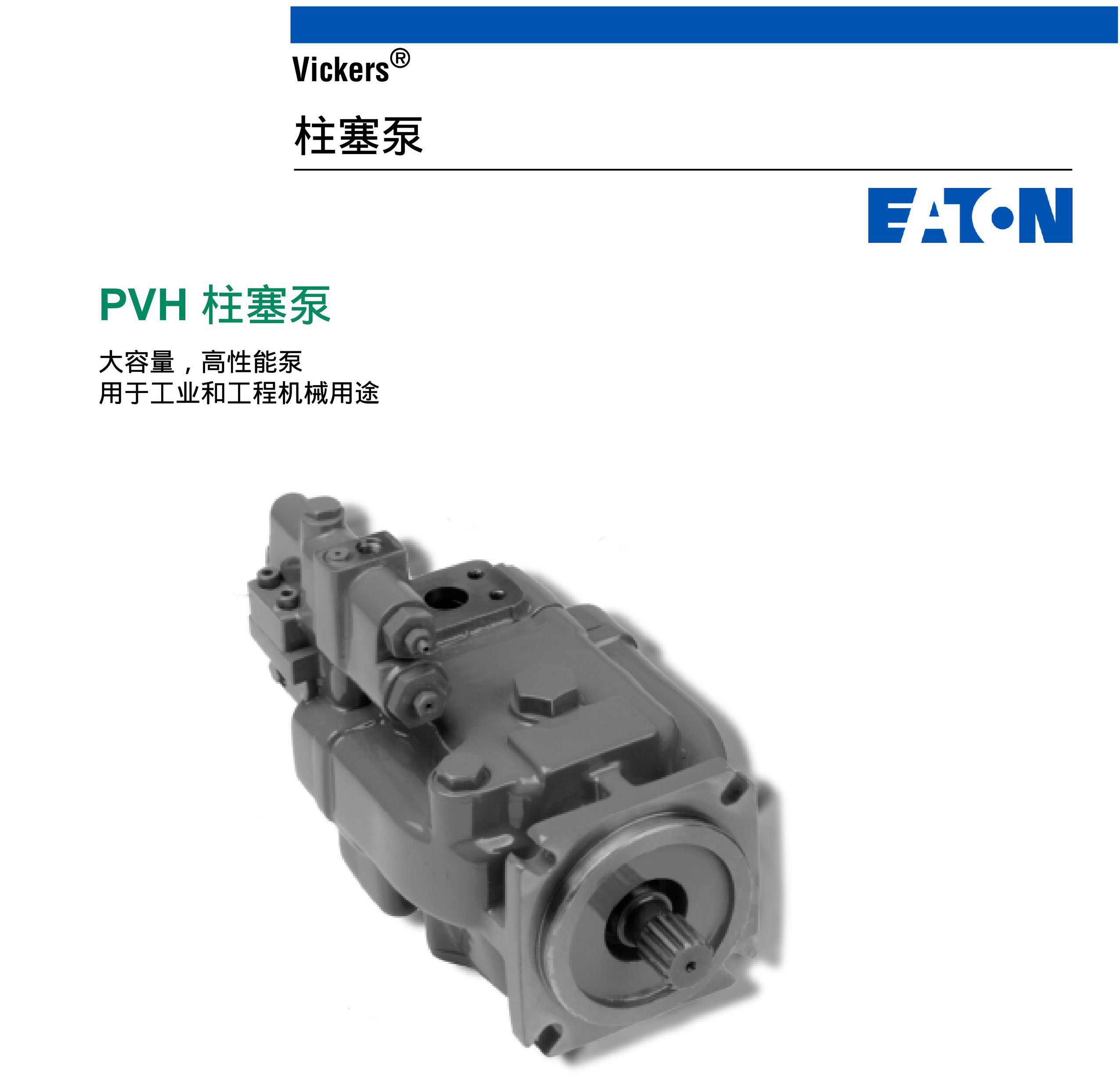 威格士柱塞泵PVH为大流量、高性能泵是变量直轴柱塞泵中的一个家族,这种泵包含了其他威格士柱塞泵的经过考验的设计。高质量制造技术及工作特征、而形体较小、重量较轻。