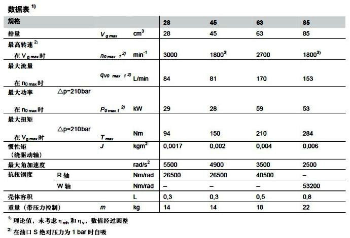 力士乐A10VNO系列开式柱塞变量泵在力士乐产品系列号为:52/53,是一种斜盘结构轴向柱塞变量泵,适用于开式静液压驱动回路。按排量可分为:28、45、63、85四种规格。其通过调节斜盘,使变量泵流量可无级调节,并且流量与驱动转速和排量成比例。全系列产品具有高功率重量比,体积尺寸小。与同类产品相比具有较低的噪音等级。力士乐A10VNO系列产品可允许连续的工作压力为210bar,驱动轴可承受轴向和径向负荷,控制方式有压力和压力流量(负荷传感)两种控制方式,响应时间短。泵体结构采用成熟的A10技术,并进行了成本优化设计,是替换定量泵的最佳选择,具有低成本高效率比。